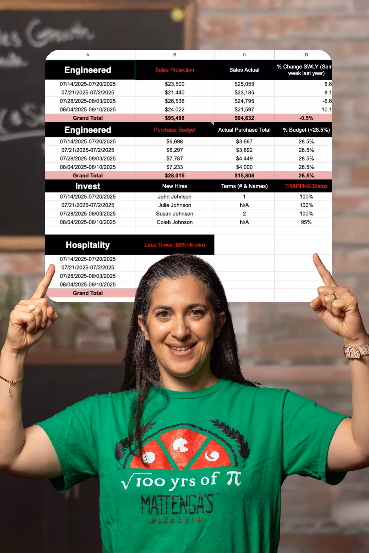 Enga uses this exact spreadsheet to run her 7-location restaurant! Grab your free spreadsheet and get started.